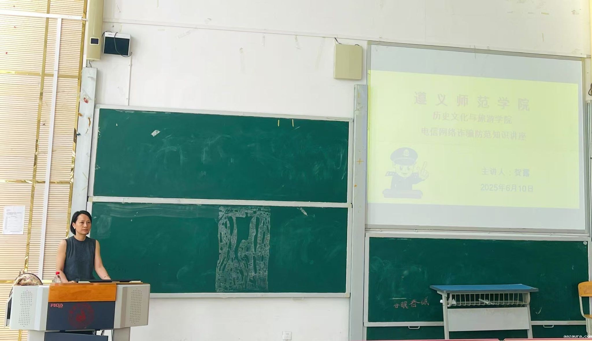 为提升学生网络安全防范意识,强化自我保护能力,筑牢校园安全屏障,2025年6月10日16时,保卫处贺露老师在执文楼119教室举办历史文化与旅游学院网络诈骗防范知识讲座。