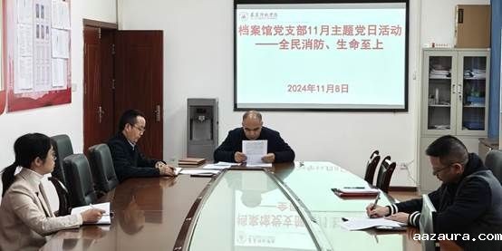 在活动中,郑有成传达学习了国务院安委会《2024年全国消防宣传月活动方案》、《中华人民共和国消防法》,增强了党员干部的安全防范意识,并带领干部职工对档案库房、档案加工场所等重点部位是否存在消防安全隐患进行了排查,经过大家认真细致的排查,未发现安全隐患。