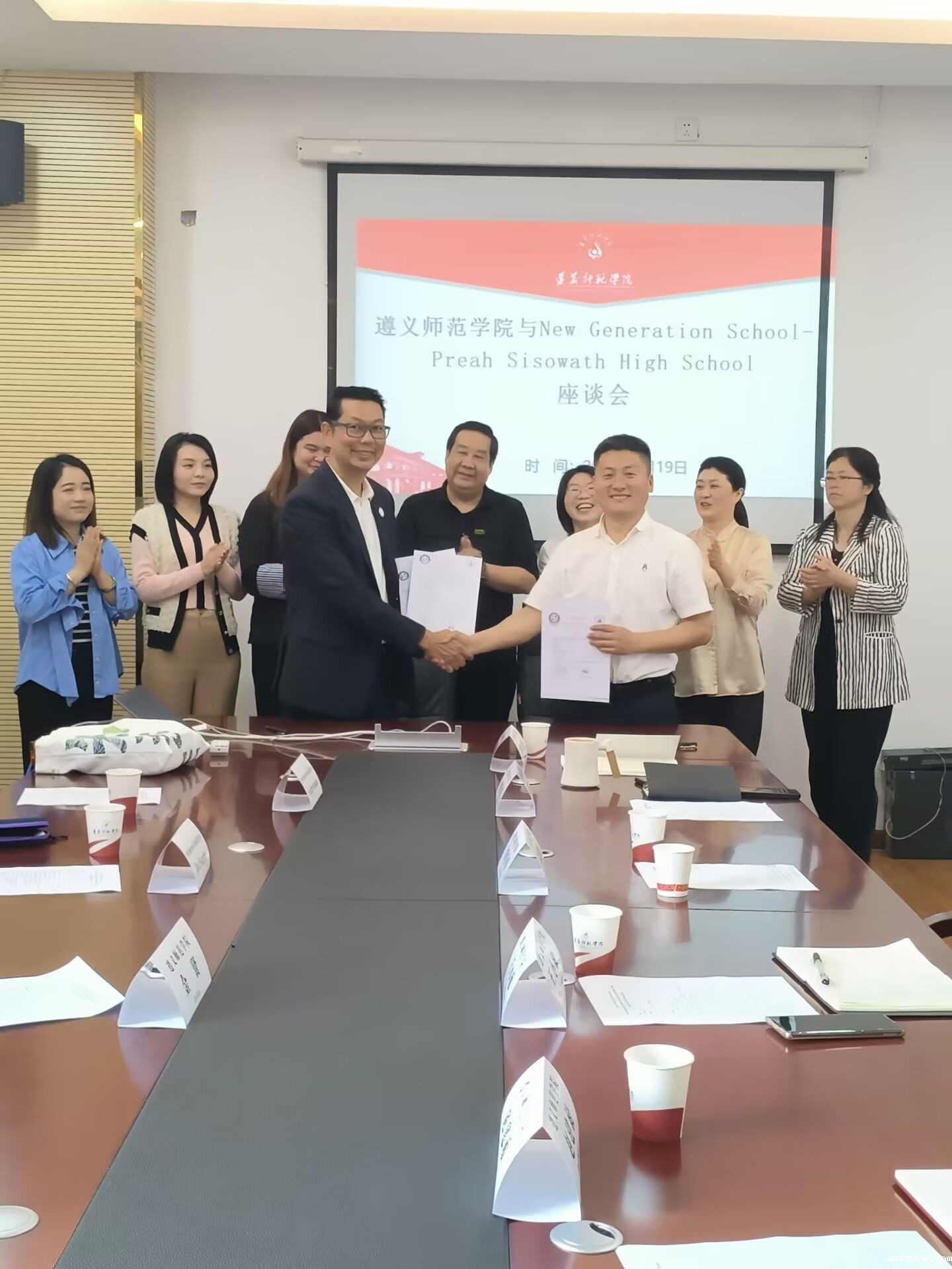 2025年5月19日上午,米兰体育中国官网网址与柬埔寨New Generation School-Preah Sisowath High School在执毓楼323会议室开展了交流合作座谈会。柬埔寨New Generation School-Preah Sisowath High School副校长一行、米兰体育中国官网网址副校长胡贵勇和国际教育学院全体教师参与了座谈。