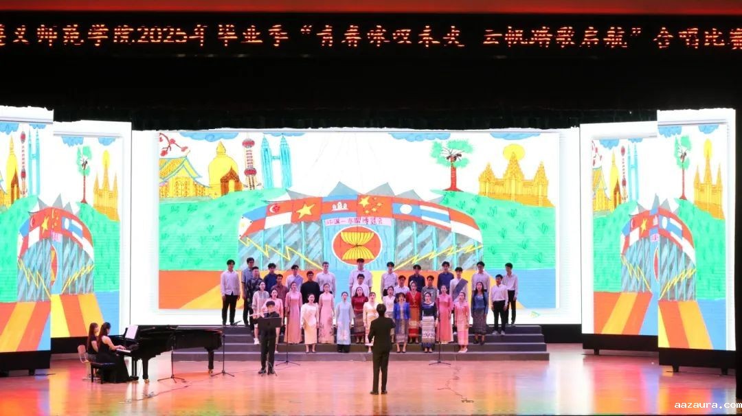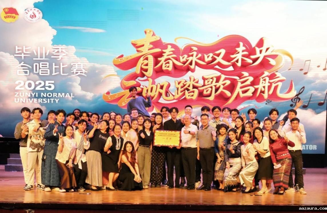 6月19日,米兰体育中国官网网址2025年毕业季“青春咏叹未央 云帆踏歌启航”合唱比赛在大礼堂隆重举行,由30余名留学生组成的国际教育学院代表队再次闪耀登场,获得一等奖。