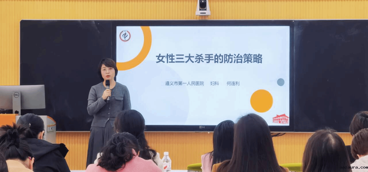 冬日暖阳,温情洋溢。为切实关爱我校女职工身心健康,普及健康知识,校工会于11月14日下午成功举办“工会护航、守护巾帼健康”女职工健康知识讲座。本次活动特邀遵义市第一人民医院妇科何连利主任与普外科霍金龙博士两位资深专家担任主讲,两位专家围绕“女性三大杀手的防治策略”、“甲状腺与乳腺健康”等知识为在场女教职工及关注健康的同学们带来了一场专业、实用、温暖的健康科普盛宴。