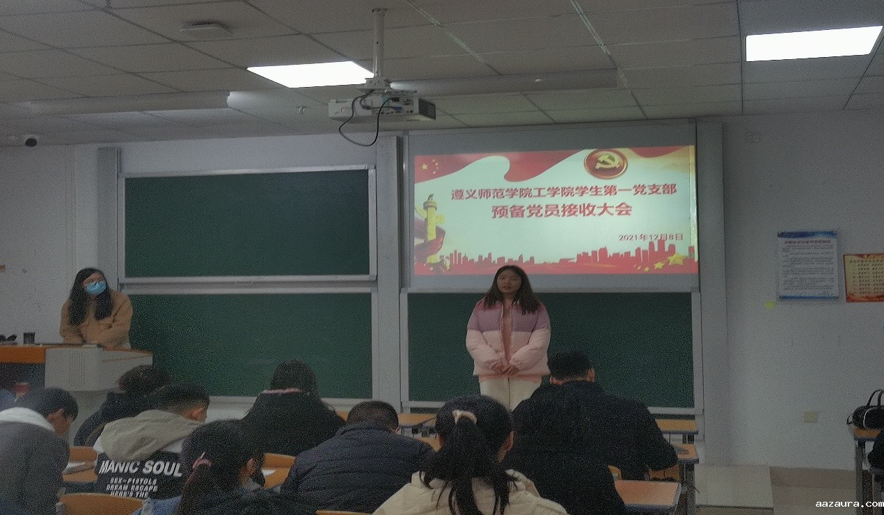 2021年12月08日工学院学生第一党支部在执矩楼420教室召开了预备党员接收大会。会议由工学院学生第一党支部书记何鸣主持,支部党员全体参会。
