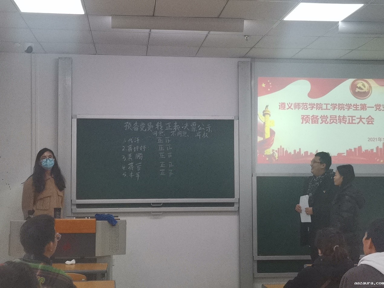 为做好学生党员发展工作,2021年12月08日,工学院学生第一党支部在执矩楼420教室召开了预备党员转正大会。会议由工学院学生第一党支部书记何鸣主持,支部全体党员参会。