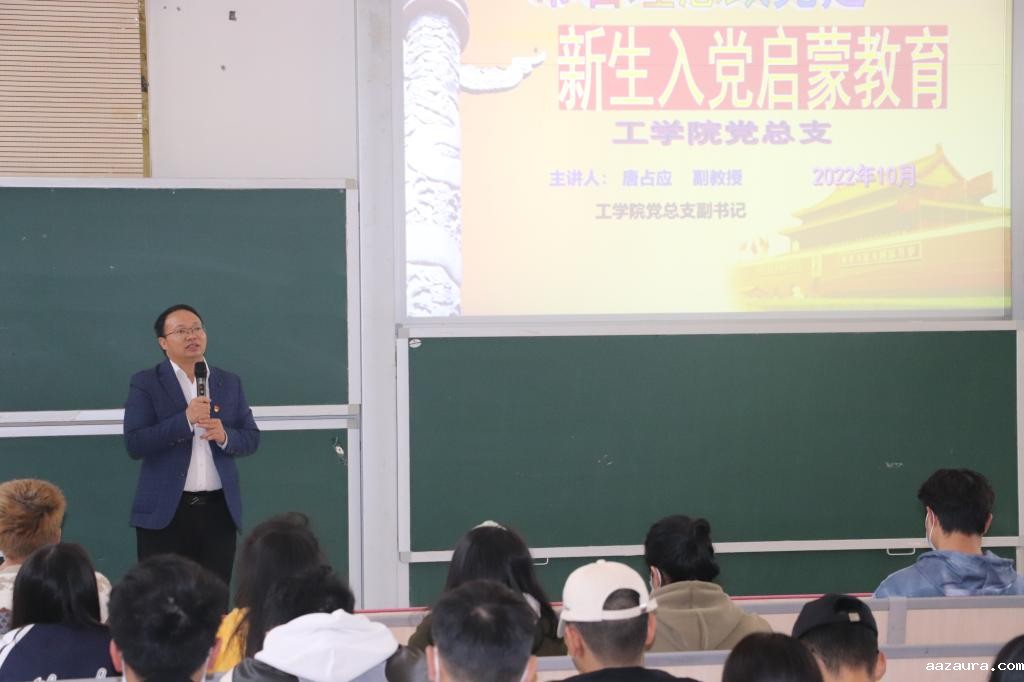 为了引导我院2022级新生加强对中国共产党的认识,端正入党动机,坚定理想信念,让品学兼优的学生早日加入中国共产党,工学院党总支于10月30日在执毓楼107开展了我院2022级新生入党启蒙教育宣讲会,本次宣讲会由工学院党总支副书记唐占应主讲,2022级全体新生参加了会议。
