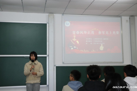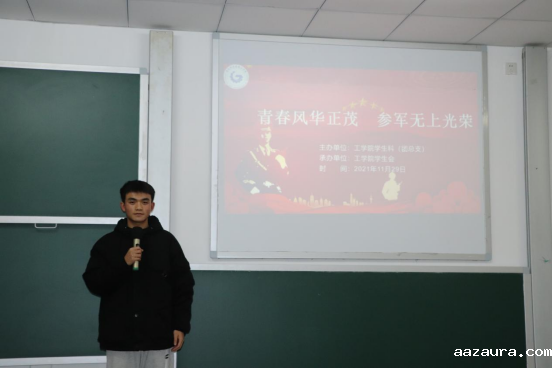 为弘扬爱国精神,提高学生服兵役的积极性以及增加参军保家卫国的意识。11月29日,工学院于执矩楼401教室举行了国防宣传教育讲座。本次讲座由工学院团总支学生会主持,各班学生代表参加。