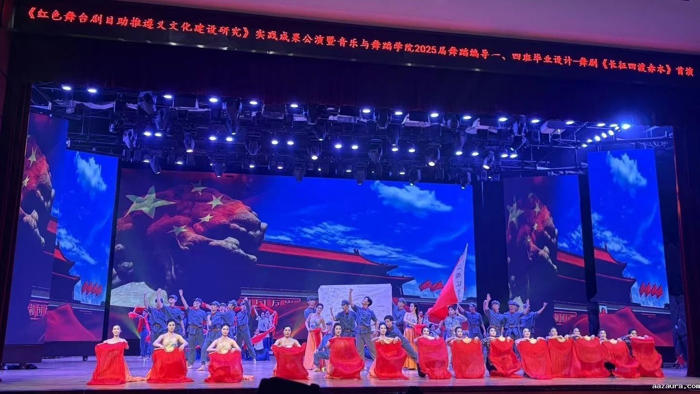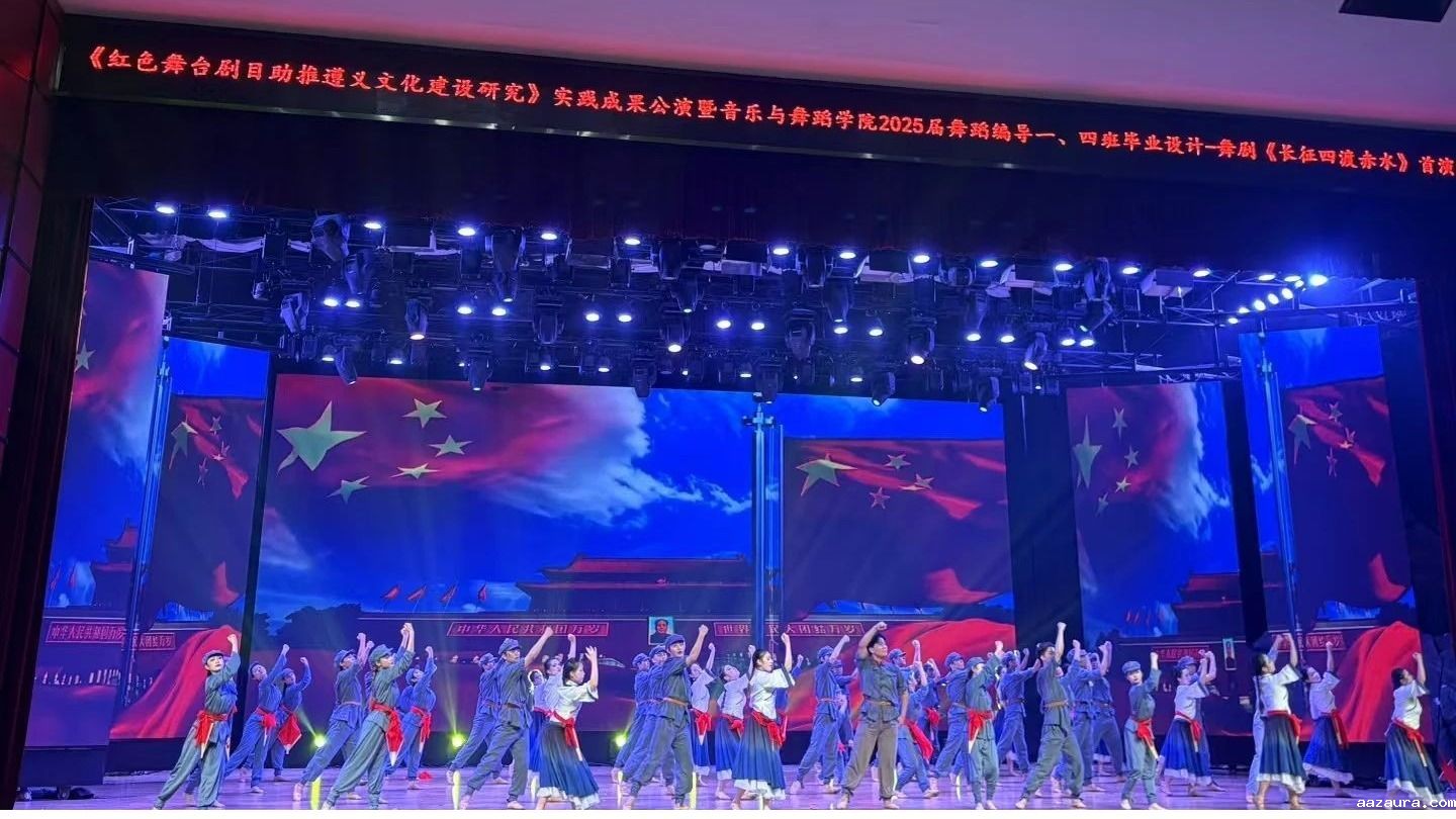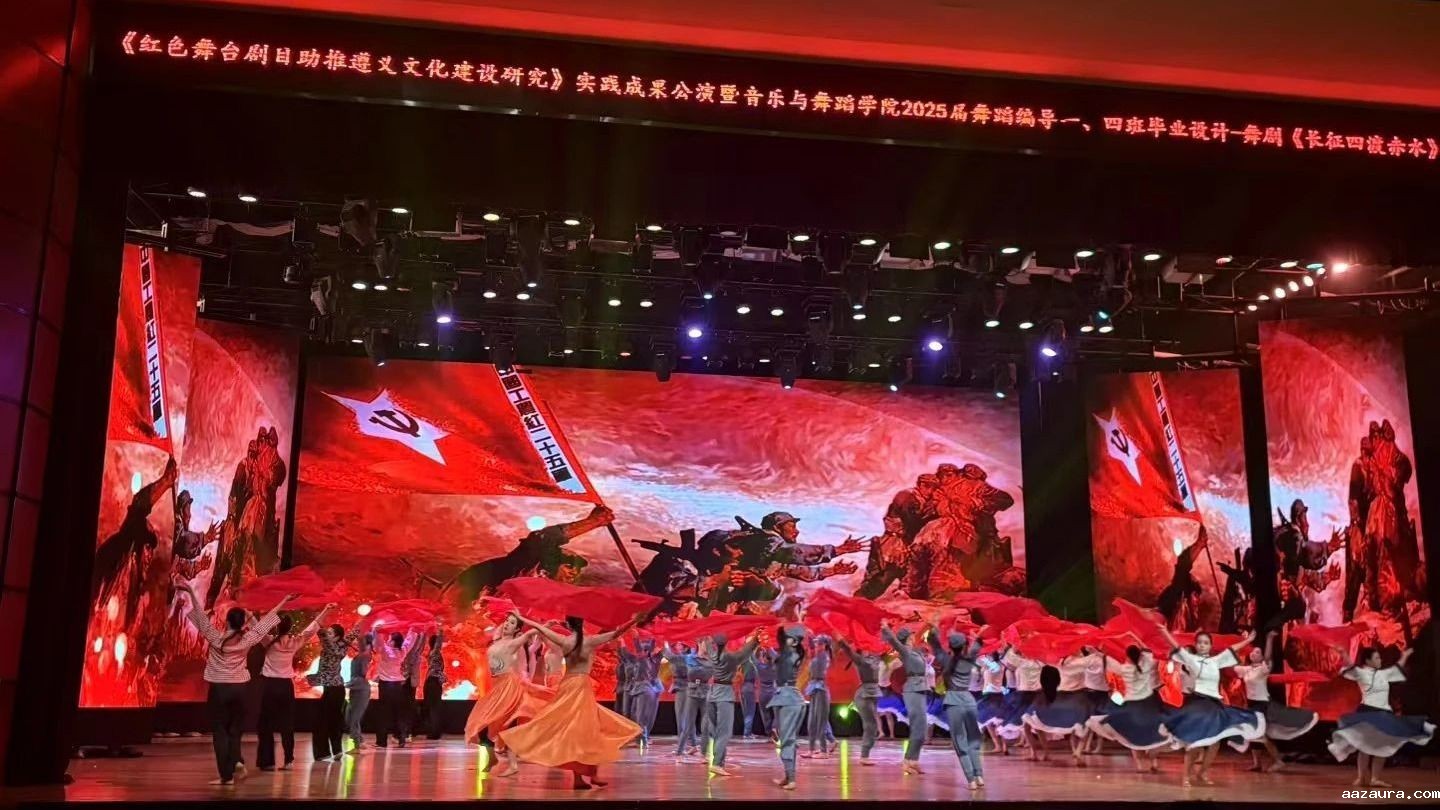 5月20日,我院2025届舞蹈编导(1)(4)班毕业设计——舞剧《长征·四渡赤水》在校大礼堂成功首演。该剧作为我院舞蹈编导教研室主任王继子老师主持的中共遵义市委2025年度重大课题项目《红色舞台剧目助推遵义文化建设研究》实践成果,以“四渡赤水”战役为叙事核心,通过青年学子的艺术视角诠释长征精神,展现新时代舞蹈编导人才的专业素养与家国情怀,现场反响热烈。