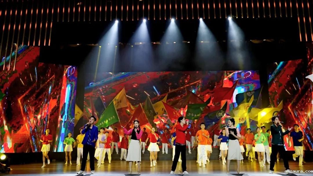 成果展示环节,本届校园文化活动月获奖作品代表和部分优秀校园文化作品通过“序”“第一篇章 山河铭记·革命者的忠魂”“第二篇章 钢铁熔炉·建设者的勋章”“第三篇章 星辰大海·青春的坐标”“尾声”逐一呈现,集中展现全省校园文化建设成果,深化美育浸润,引导广大师生深刻把握新时代伟大成就,投身强国建设、民族复兴伟业。