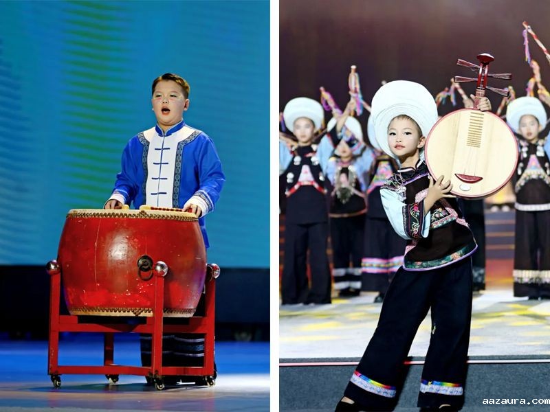 贞丰县第一小学、汇川区重庆路小学学生携手演唱《玉盘》,稚嫩嗓音搭配活泼动作,尽显童真,为活动增添灵动色彩。