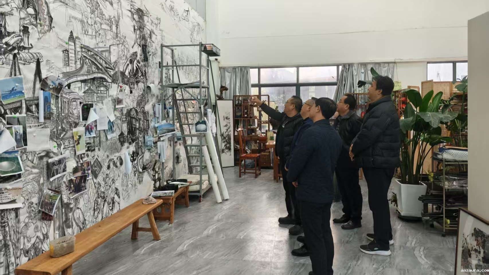 美术学院授牌结束后,吴波在学院党总支副书记李强、基地美术方向办公室主任沈宁波的陪同下,参观了沈宁波等人创作的巨幅《西部大开发》国画及其他红色美术作品;在音乐与舞蹈学院授牌前,吴波就基地音乐舞蹈方向近期工作情况,与学院党总支副书记(主持工作)安华文、副书记范星佑进行交流座谈。