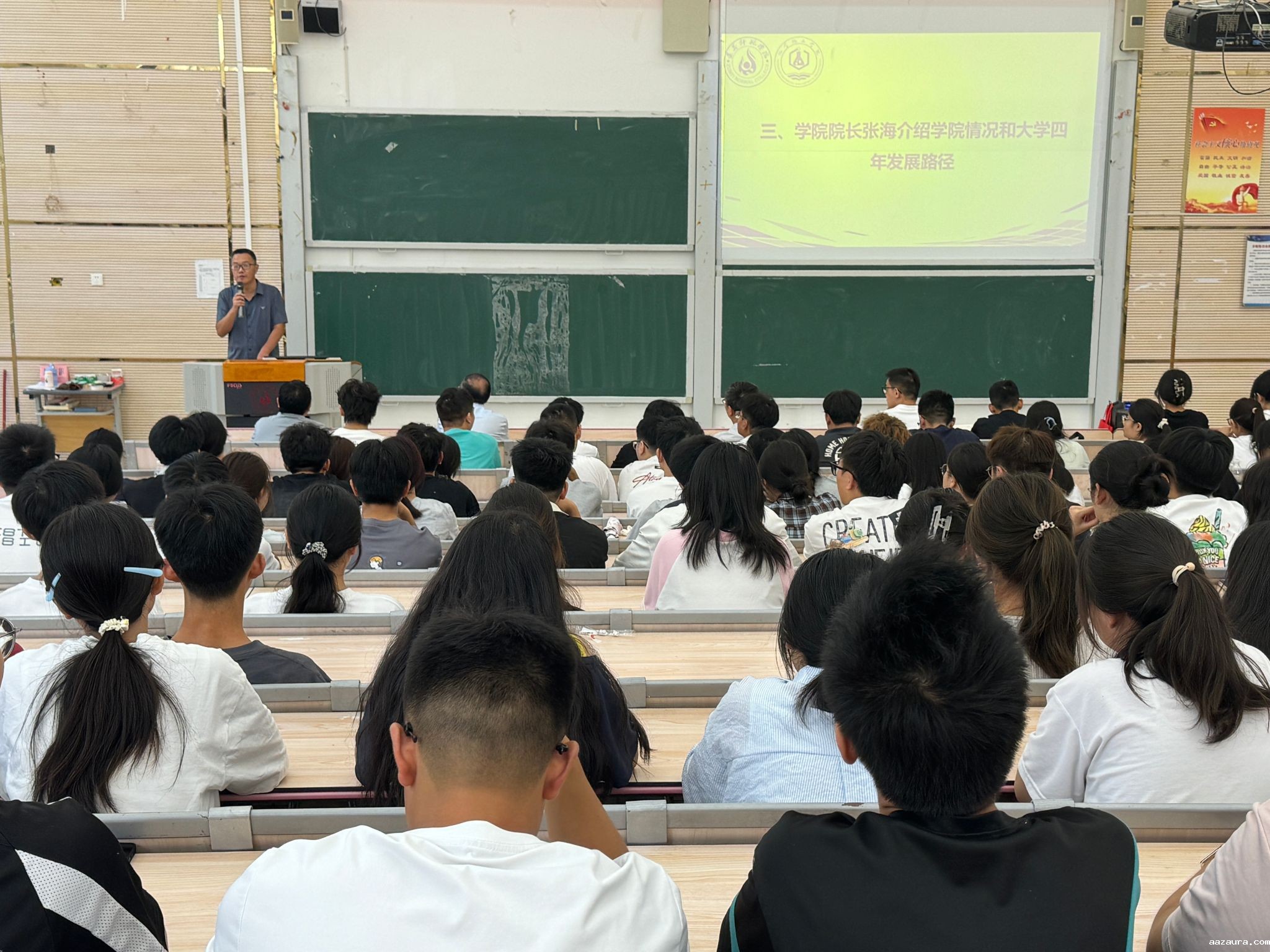 随后,学院院长张海详细介绍了学院的办学历史、基本概况、学科优势、雄厚的师资力量及近年来在科研领域取得的丰硕成果,让新生们对所学专业与学院发展有了更全面、深入的认知。同时,张海针对新生未来的学习与发展提出四点建议:其一,解放思想,打破思维局限,努力成为具备独立思考能力的学习者;其二,主动规划,提前布局学业与职业发展,培养自主发展的核心能力;其三,认清专业与行业的紧密关联,明确学习的现实意义与未来方向;其四,重视实践,积极参与实验操作、科研项目与行业实践,在实践中锤炼扎实的专业技能,力争成长为兼具扎实专业能力与高度社会责任感的高素质化工人才。