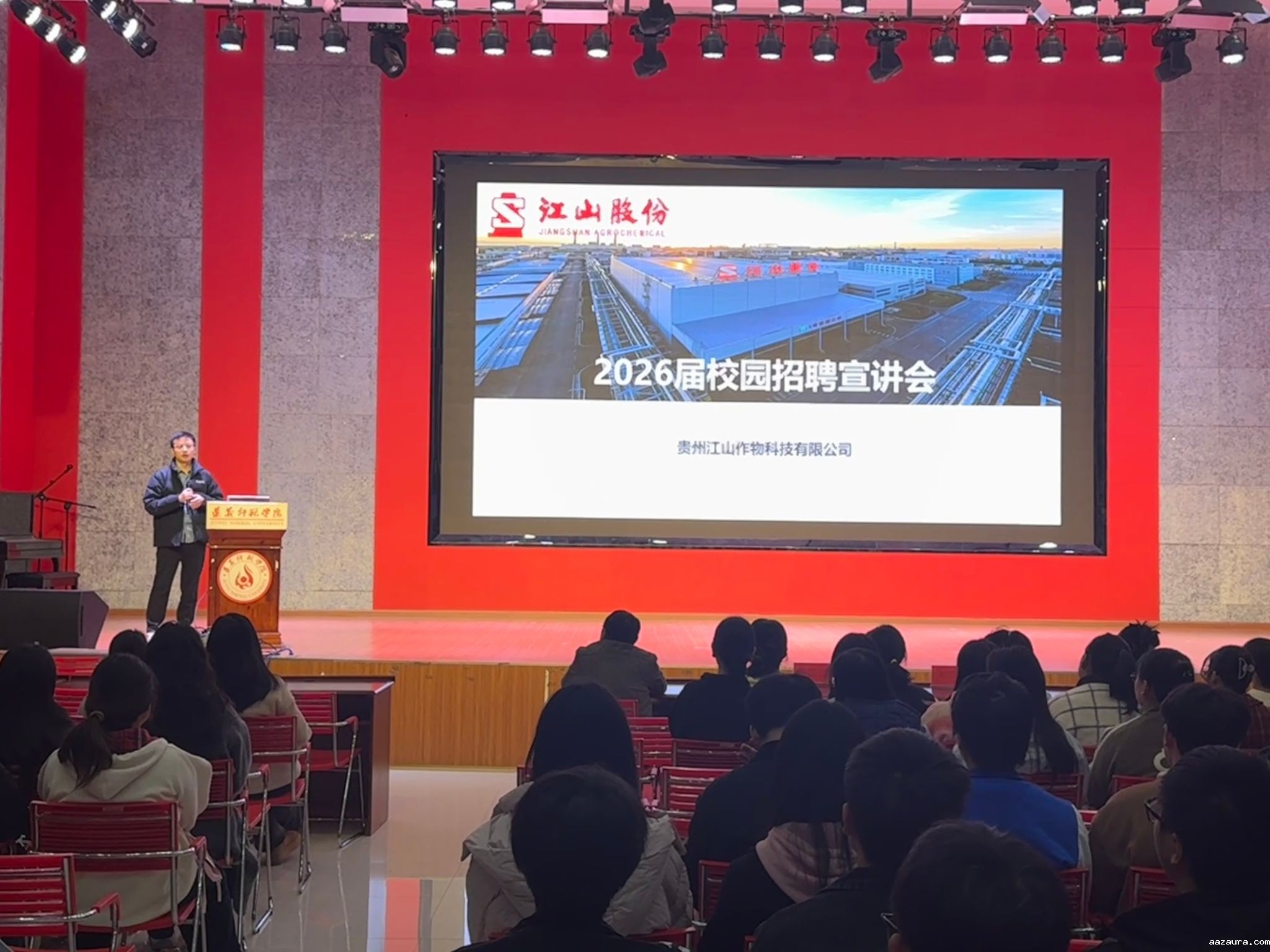 随后,贵州江山作物科技有限公司人力主管雷荣春通过播放企业宣传片、进行招聘宣讲,向在场同学全方位展示了公司的发展历程、业务领域、技术实力及未来规划。公司综合管理部部长金小斌则围绕企业文化、人才发展理念及员工成长路径发表了讲话,分享了公司对于人才的重视与培养机制,激发了同学们的浓厚兴趣。