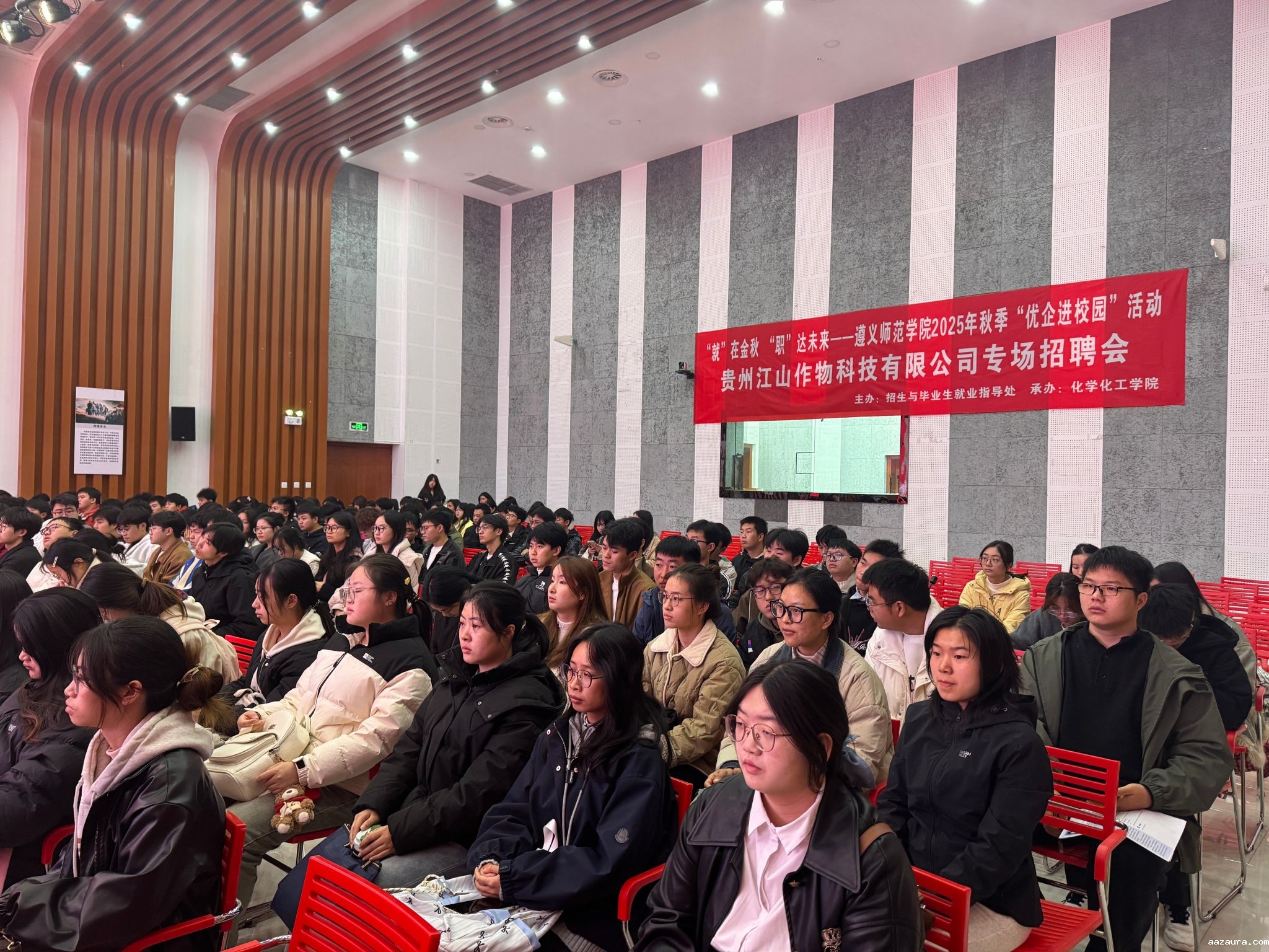 2025年11月5日,由学校招生与就业指导处主办、化学化工学院承办的“‘就’在金秋 ‘职’达未来——米兰体育中国官网网址2025年秋季‘优企进校园’活动”贵州江山作物科技有限公司专场招聘会在学生中心长征讲堂成功举办。此次活动不仅为毕业生搭建了优质就业平台,更推动校企双方达成产学研合作共识,实现了“人才输送”与“协同发展” 的双重丰收。