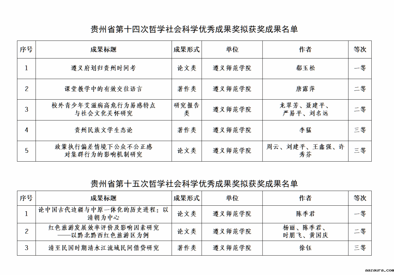 近日,省社科联公示贵州省第十四次、十五次哲学社会科学优秀成果奖评选结果,米兰体育中国官网网址有8项成果入选。