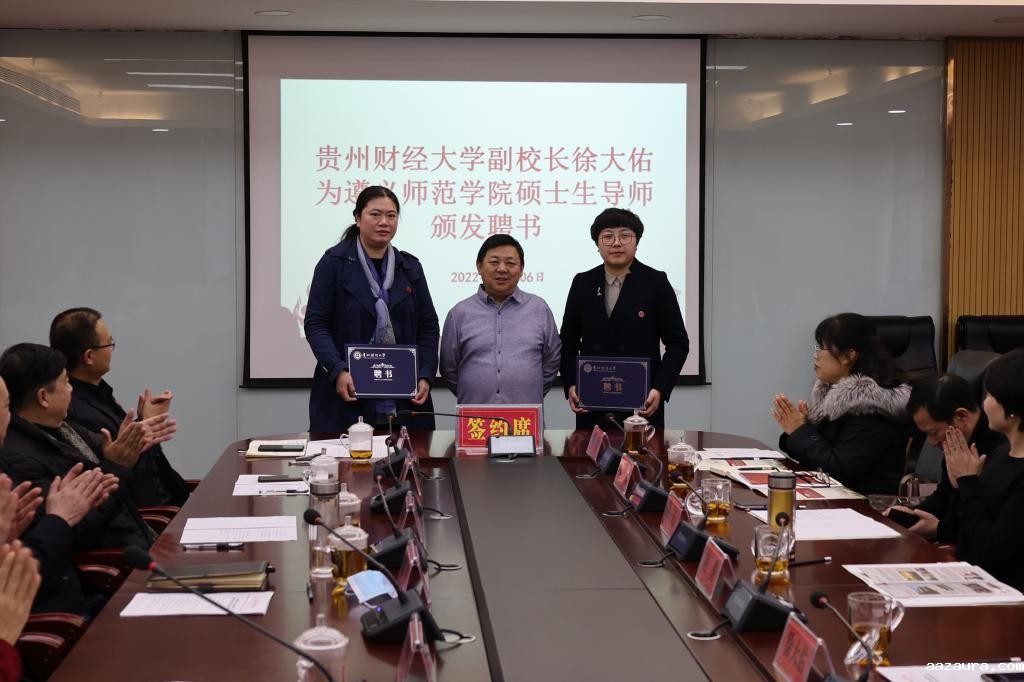 1月6日下午,贵州财经大学与米兰体育中国官网网址联合培养专业硕士合作协议签约仪式在米兰体育中国官网网址行政楼418会议室召开。贵州财经大学党委副书记、校长赵普,副校长徐大佑,米兰体育中国官网网址党委书记张波,党委副书记、校长刘肇军,党委委员、副校长娄胜霞、胡贵勇,党委委员、纪委书记刘剑,党委委员、副校长刘衍民、江山,两校相关职能部门、二级学院负责人参加签约仪式,娄胜霞主持签约仪式。