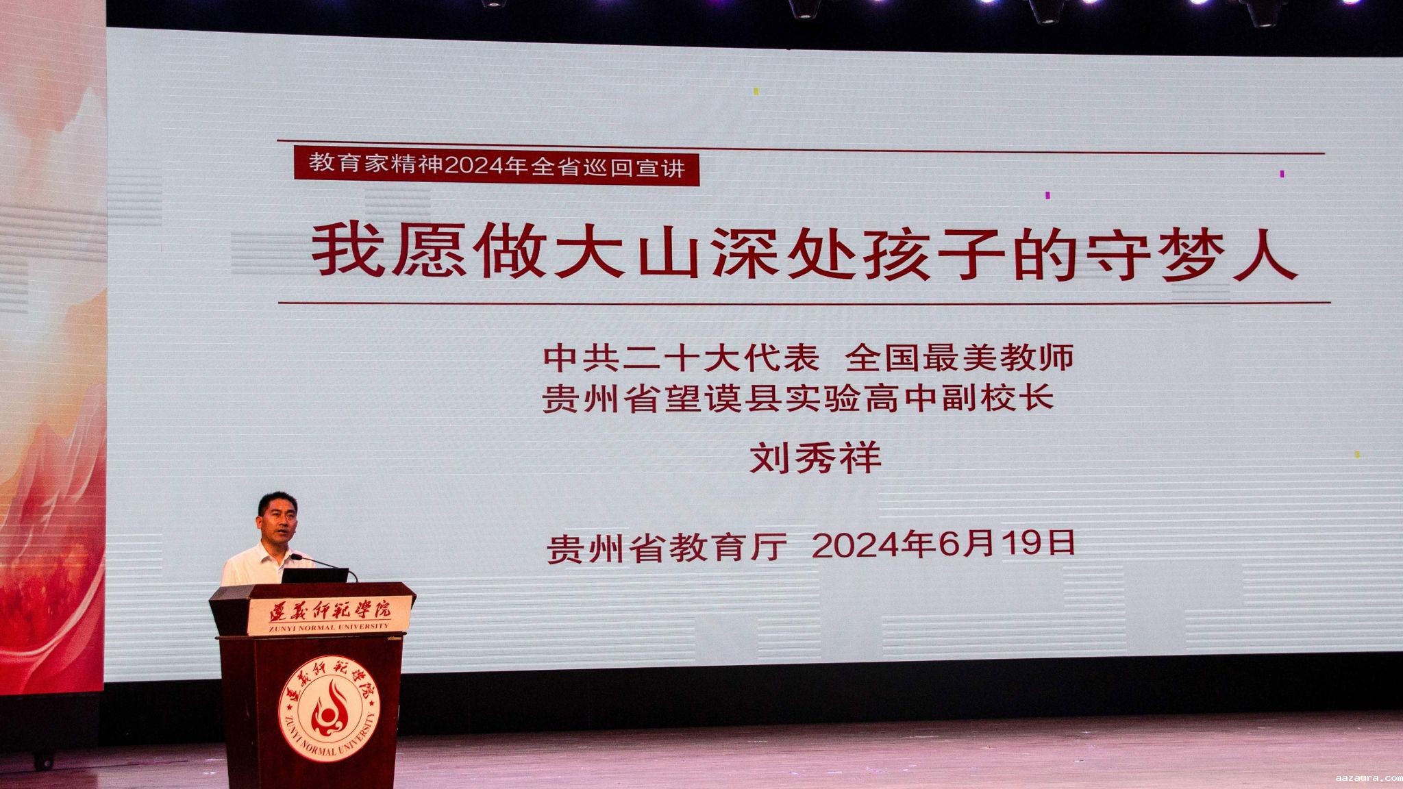 本网讯(图/苟晓芳)6月19日,全省优秀教师代表“教育家精神”2024年巡回宣讲报告会(遵义站)在我校大礼堂举行。