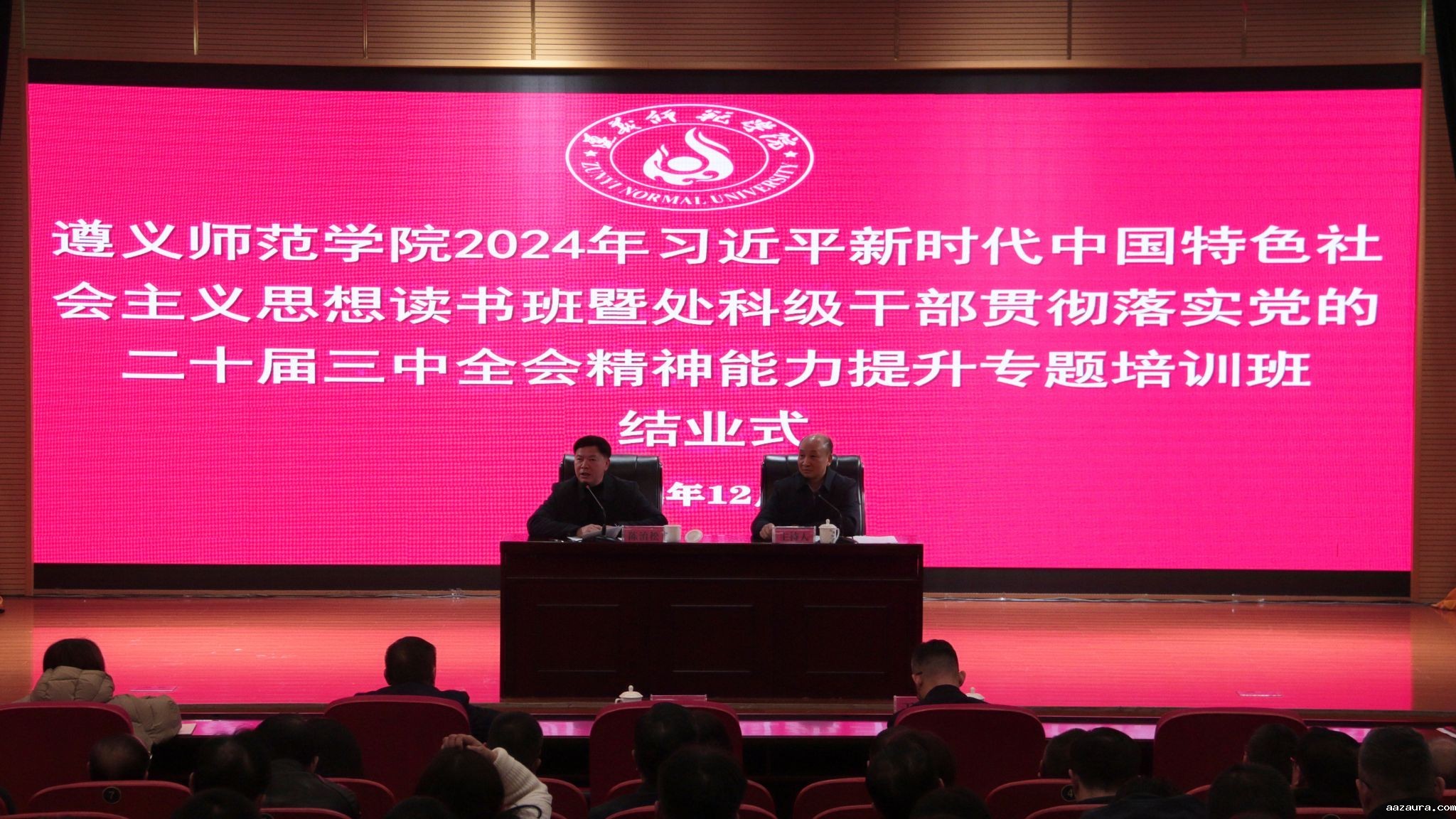 本网讯(文/组织部 图/张叶叶) 12月5日,学校2024年习近平新时代中国特色社会主义思想读书班暨处科级干部贯彻落实党的二十届三中全会精神能力提升专题培训班举行结业式。党委书记陈治松出席结业式并作总结讲话,全体处科级干部参加结业式。结业式由党委副书记曾伯平主持。