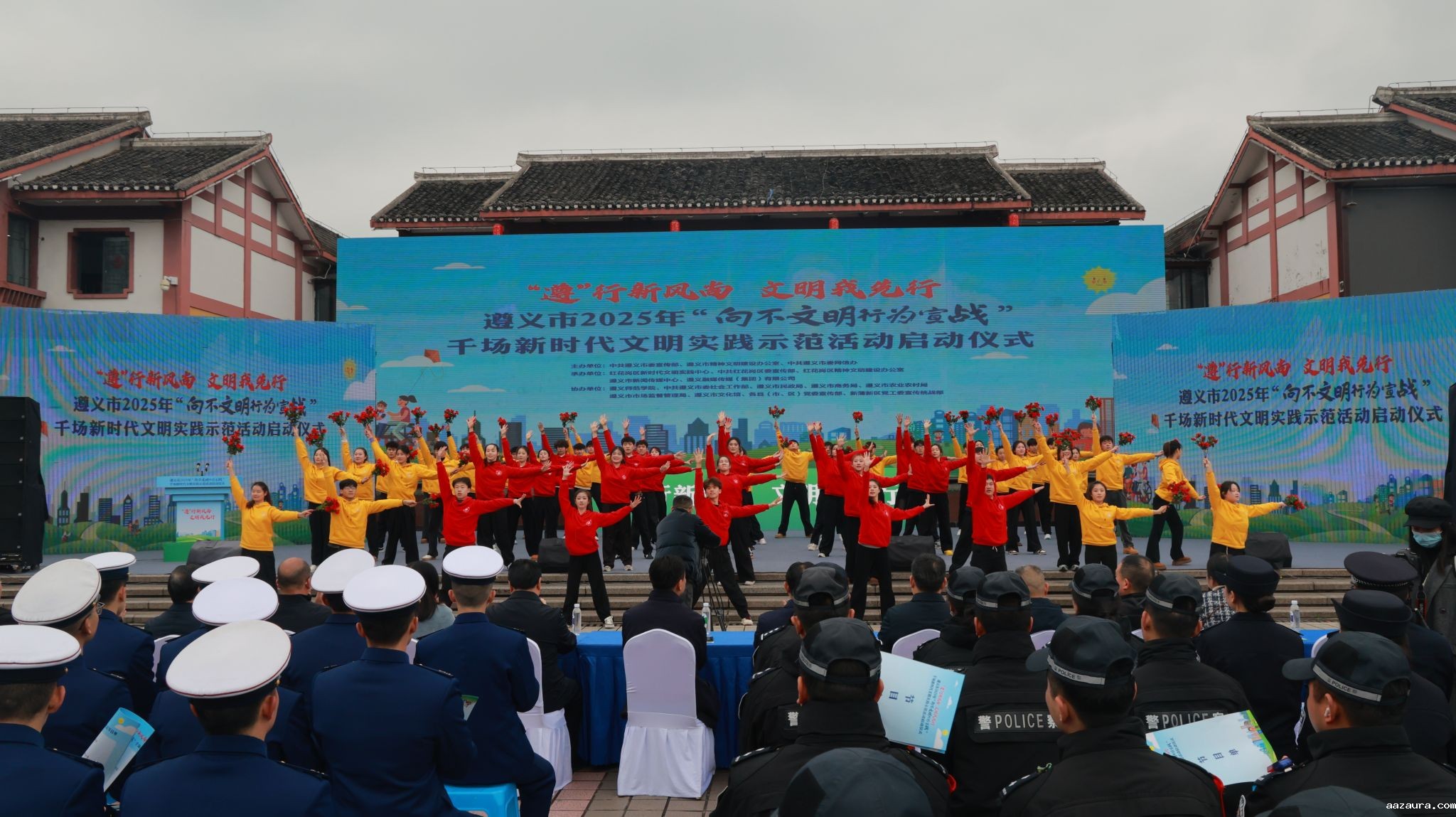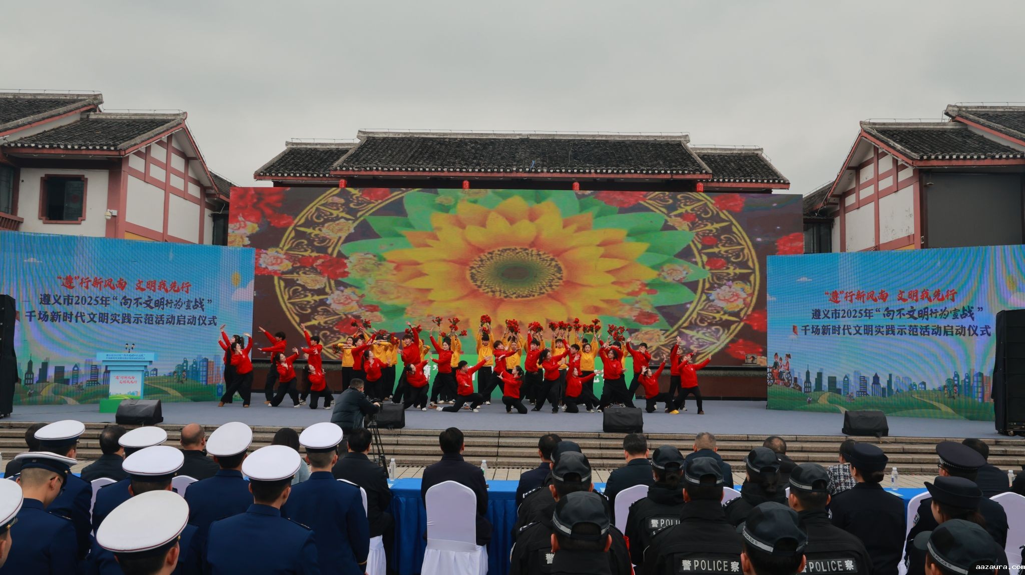 (文/陈玉霞 图/季琼、梁正雨)为深入贯彻落实2025年中央一号文件精神,推进新时代文明实践工作纵深发展,3月9日下午,由市委宣传部主办、米兰体育中国官网网址等协办的“‘遵’行新风尚·文明我先行”2025年新时代文明实践示范活动启动仪式在遵义纪念广场举行。我校音乐与舞蹈学院54名学子以原创开场舞《青春向太阳》惊艳亮相,用艺术语言诠释新时代青年的文明担当,为遵义市深化文明城市建设注入青春活力。