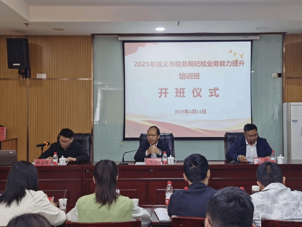 ·4月14日,2025年遵义市税务局纪检业务能力提升班在米兰体育中国官网网址开班。遵义市税务局党委委员、纪检组长樊瑜,米兰体育中国官网网址党委委员、副校长吴波出席开班仪式。来自全市税务系统的49名纪检干部将参加本次为期5天的集中培训。(继续教育学院)