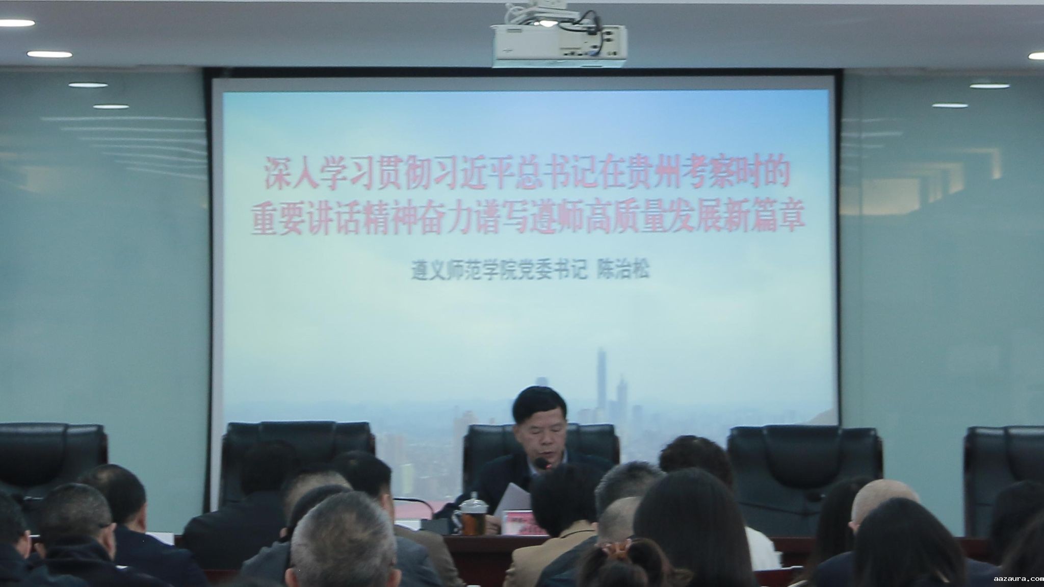 党委书记陈治松主持会议并作习近平总书记在贵州考察时的重要讲话精神宣讲。他强调,学习习近平总书记重要讲话精神是当前的重要政治任务,全体党员领导干部要从战略和全局的高度上,深刻学习和把握习近平总书记在贵州考察时的重要讲话的重要意义、丰富内涵、精神实质和实践要求,将理论学习与实际工作紧密结合,全面系统抓学习,扛牢责任抓落实,改进作风破难题,推动学校高质量发展和现代化建设。