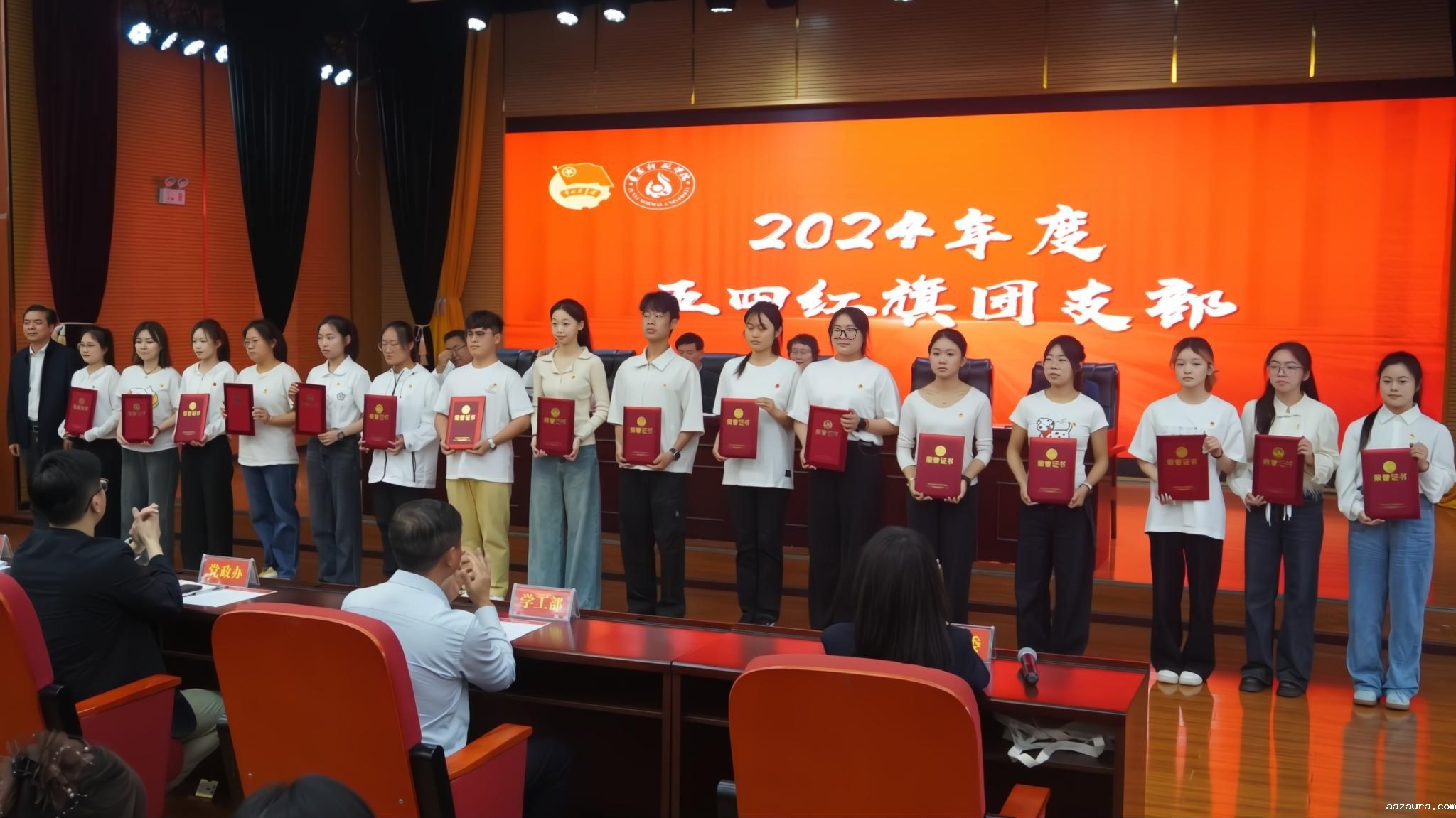 陈治松、肖仲久、吴波、王春华分别为五四红旗团总支、五四红旗团支部、优秀共青团干部、优秀共青团员颁奖。经校院两级评选、学校审核,共评选出2024年度6个“五四红旗团总支”、31个“五四红旗团支部”、12名“优秀共青团干部”、133名“优秀共青团员”。