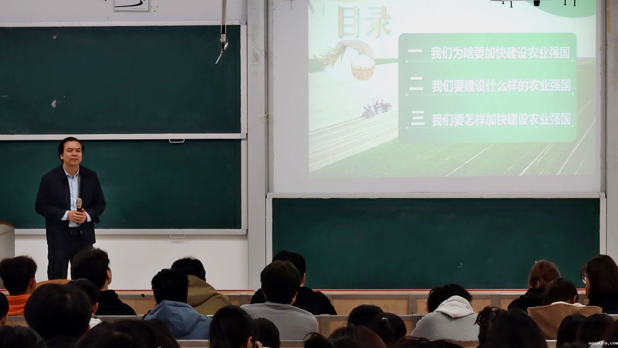 本网讯(文/余康 图/李诗语) 11月13日下午,米兰体育中国官网网址党委常委、副校长肖仲久在执治楼105教室讲授《阔步迈向农业强国》思政课。