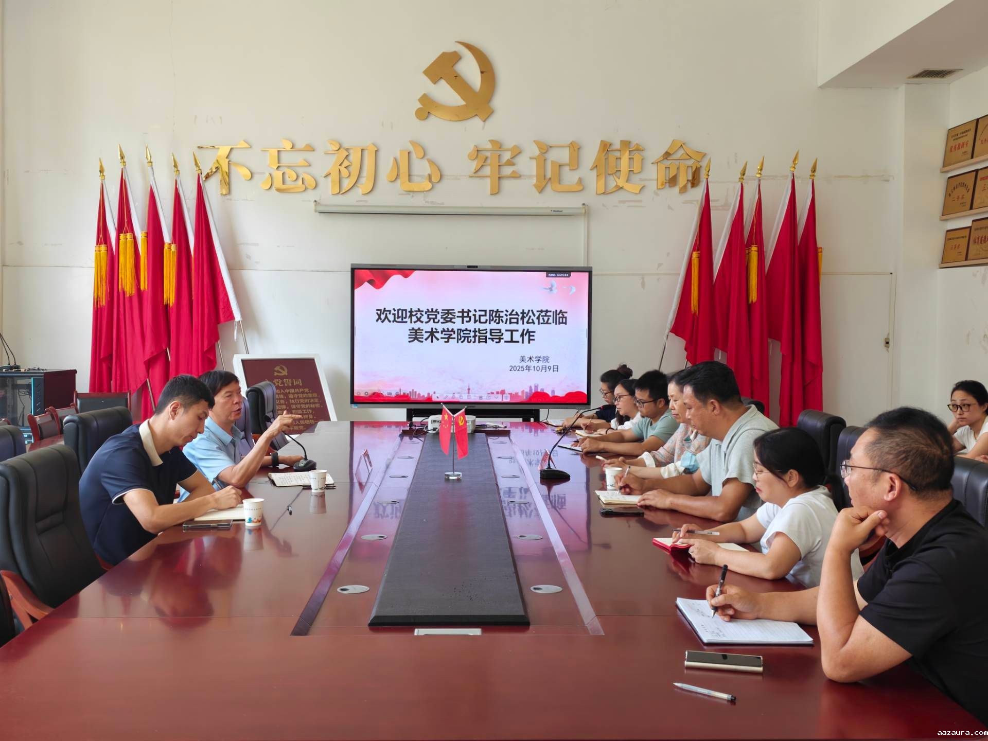 2025年10月9日下午,学校党委书记陈治松一行莅临美术学院开展调研座谈,为学院的发展把脉问诊、精准指导。学院全体处科级干部及行政人员参加,会议在执艺楼208会议室召开,由学院党总支副书记李强主持。