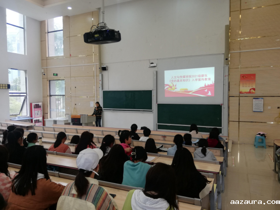 2021年10月13日中午,人文与传媒学院党总支书记罗宏梅老师在执文楼119教室为人文与传媒学院2021级全体新生进行《党的基本知识》入学宣传教育。罗书记从党的宗旨、党的发展历程、共产党员的精神内涵以及怎样才能加入中国共产党几个方面对新生进行了宣传教育。