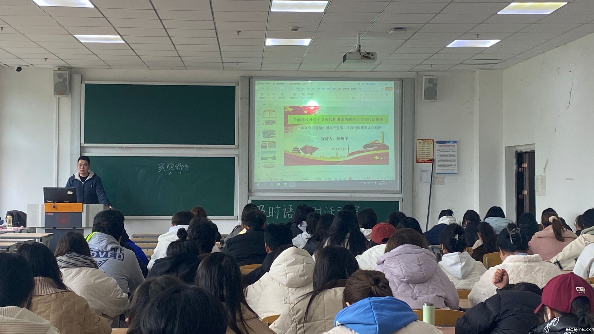 宣讲团队的师生们主要就进一步深刻领会党的二十大主题、进一步深刻领会过去5年的工作和新时代10年的伟大变革、深刻领会开辟马克思主义中国化时代化新境界、深刻领会新时代新征程中国共产党的使命任务深刻领会中国式现代化的中国特色和本质要求、深刻领会教育科技人才、法治建设、国家安全等方面的重大部署等几个方面进行了宣讲。