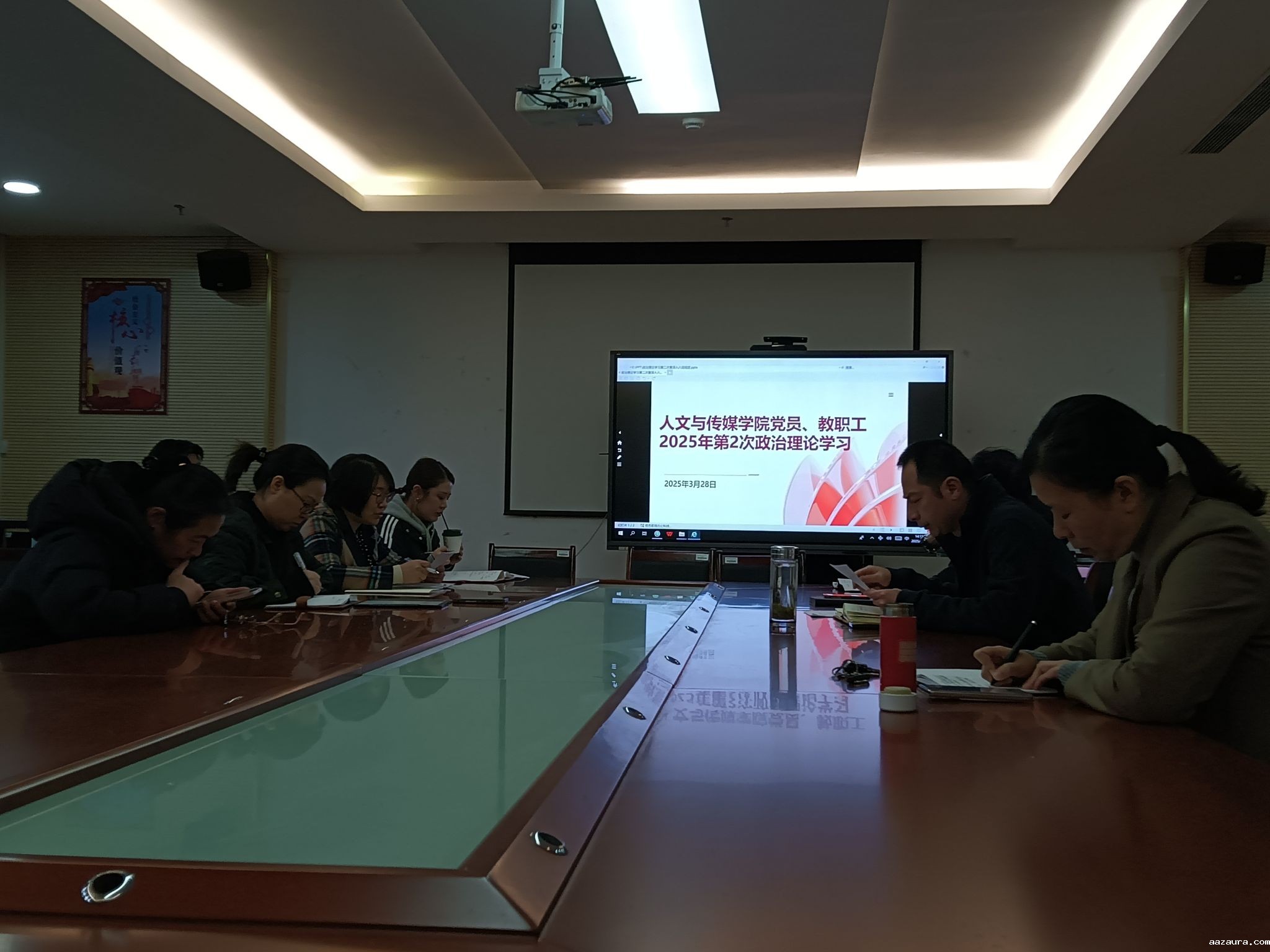 3月28,人文与传媒学院2025年第二次党员、教职工政治理论学习会在执文楼215会议室召开全体教师参加,会议由学院党总支书记丁亮主持