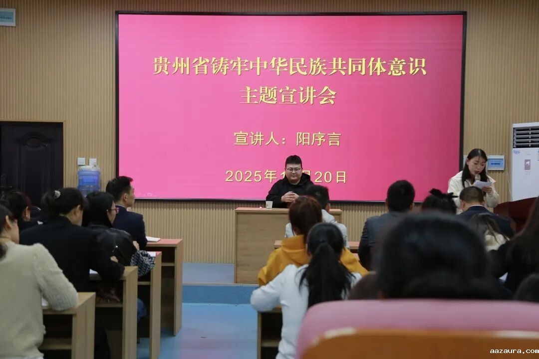 2025 年 10 月 20 日,贵州省铸牢中华民族共同体意识宣讲团成员走进播州区第二小学,为全校100余名教师开展专题宣讲活动。遵义市铸牢中华民族共同体意识实践中心主任王家富、贵州省铸牢中华民族共同体意识宣讲员、米兰体育中国官网网址历史文化与旅游学院讲师阳序言、播州区民宗委相关负责人参与活动。