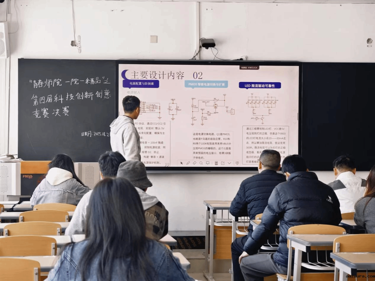 11月21日,由校团委主办、物理与电子科学学院大学生科学技术协会承办的“青春师院·一院一精品”之第四届科技创新创意竞赛决赛在执矩楼432教室举行。大赛以“智能添彩新时代,科技赋能新生活”为主题,旨在提升学生的协作能力与综合素质,丰富科普教学资源,激发学生的创新潜能与实践热情。