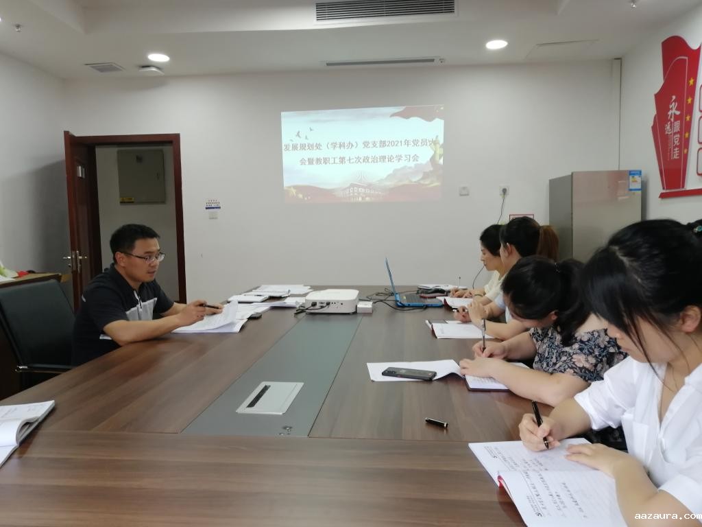7月9日,发展规划处党支部在行政楼424召开2021年党员大会暨教职工第七次政治理论学习会,会议由党支部书记、处长张道伟主持,部门全体人员参加。
