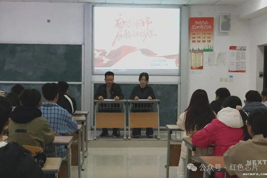 为引导师生深刻把握习近平新时代中国特色社会主义思想的理论精髓,筑牢思想根基。2025年10月31日,信息工程学院于执矩楼332举办“理论宣传二人讲”活动。本次宣讲由周文达、洪妤璇主讲,两位宣讲人分别聚焦理论与实践,解读《习近平谈治国理政》第五卷的核心要义与学校实践路径。