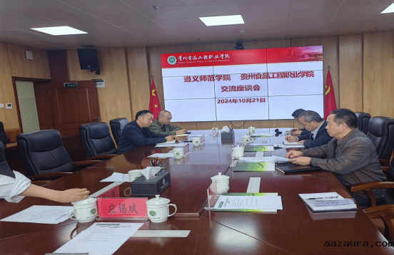 参观结束后,双方在行政楼8楼会议室举行了交流座谈会,贵州食品工程技术学院党政办公室主任龚喜洋详细介绍了办学理念、办学特色、人才培养模式、产教融合、校企合作以及服务区域等方面的情况,并对学院举办校园美食文化节的历史、背景、目的以及具体的实施步骤和效果。同时,对外交流合作科科长杨建香分享了如何运用好美食文化节这一平台,促进学生对中华美食文化的了解和热爱,以提升食堂的服务质量和师生的饮食体验。双方还就后勤服务保障工作进行了深入细致的交流。